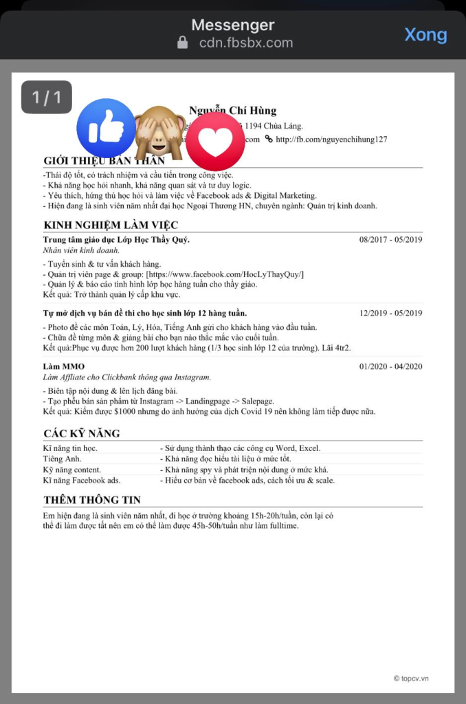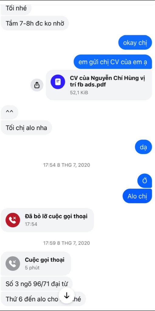 Thế là mình đi làm Facebook Ads ở một shop thời trang ở tận dưới Đại Từ, ngày ấy mình ở gần FTU nên là đi xa vải. Làm ở đấy được một thời gian ngắn nhưng mà thật sự là mình cũng học được kha khá nhiều thứ. Nghĩ lại thấy quá là biết ơn vì ngày ấy mình ngáo ngơ vl nên mình cũng vừa nhắn cám ơn đến chị ấy vì ngày ấy cho mình một cơ hội được đi làm. Hê hê.